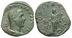 Dupondius, [IMP CAES NER TRAIANO OPT]IMO AVG [GER DAC PM TR P COS] [PP] Radiate, draped bust r. Rev. SENATVS POPVLVSQVE ROMANVS / S-C Felicitas, wearing long robe, standing l., holding cornucopiae with her l. hand, caduceus in her raised r. hand. BN IV, 104, 850. RIC 292, 674. C. 353.