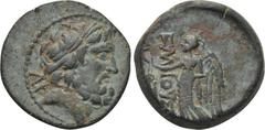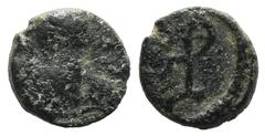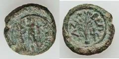 This is not a Seleucid era coin. This is a quadrans of Gaza struck under Hadrian in 130/1 AD! Obverse : MEINWC, Minos standing left holding long branch; Reverse: GAZA / BEPI, Branch, Gaza symbol.