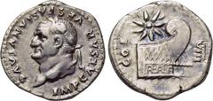 Apollo, naked, standing in front of burning altar, holding patera and a branch, E to centre right