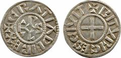 The little x between the letters T and V show that this a late issue of Charles the Bald or an early one of Charles the Simple and not of Charlemagne.