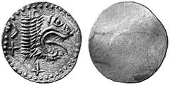 Dies: With absolute certainty, the coin is struck from the same dies as a gold stater SNG ANS 70 (refer Pl. 4 SNG ANS Part 9 Greco-Bactrian and Indo-Greek Coins). The reverse die is characterised by an anomalous style with unusually bold dots or beads that delimit the letters of the legend and the ornamentation of the omphalos. The comparable elements on established genuine coins are more subtly executed than those on Lot 4166. Jenkins commented that on the fake coins of this type… ‘The reverse may be compared with that of the genuine coins in the BM and we note once again the comparatively flat and feeble modelling.’ To my knowledge there is no known authentic example of a Seleucid drachm of the period of Antiochos II struck from the same dies as a gold stater.